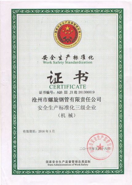 安全标准化证书