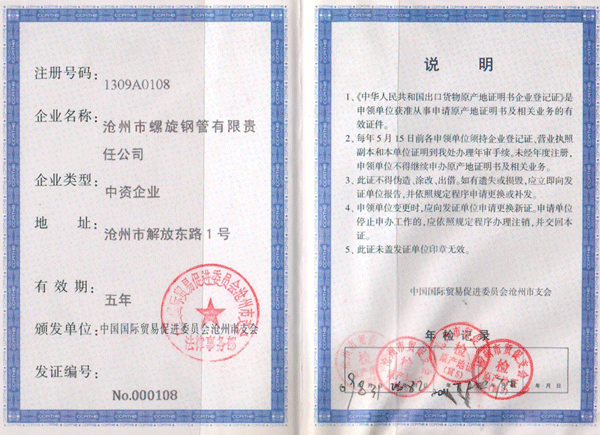 出口货物原产地证
