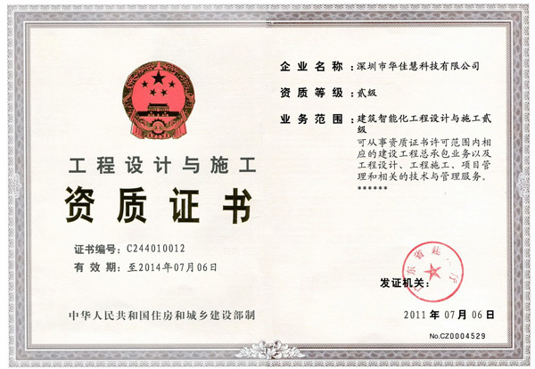 工程设计与施工资质证书