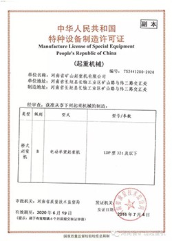 电动葫芦桥式许可证
