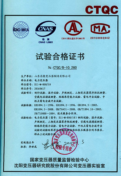 试验合格证书