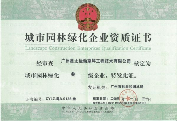 城乡立体绿化企业资质证书