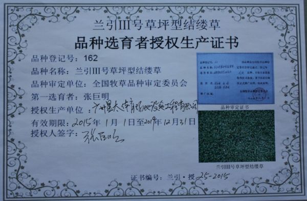 品种选育者授权生产证书